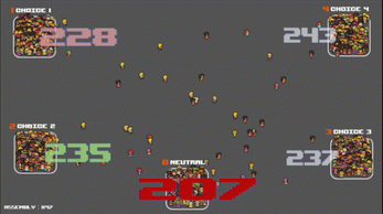 A "moving debate" game to use as an overlay on your Twitch streams, and that your viewers can play via the chat to position themselves on different areas (and therefore different opinions), being able to change at any moment. The point is to discuss anything and see how opinions change during the debates.